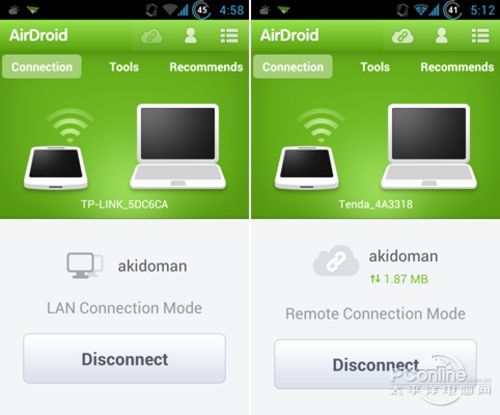 8、支持在不同网络下管理手机。若在同一 WIFI 网络下,会进入 LAN 连接模式,若不在同一 WIFI 网络下,会进入 Remote 连接模式(3G/4G下也可以)。貌似Remote 模式每月只提供 1G 的流量。